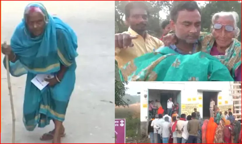 Bihar Chunav 2025: पोलिंग बूध पर बुजुर्ग महिला को गोद में लेकर पहुंचा शख्स, सामने आ रही दिलचस्प तस्वीरें