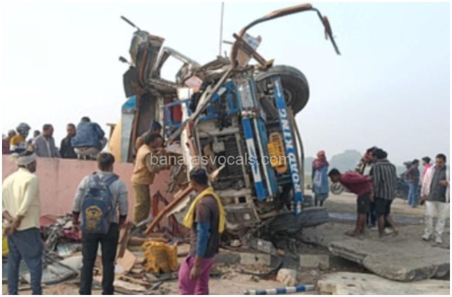वाराणसी में टैंकर पलटा, दो चालकों की मौत