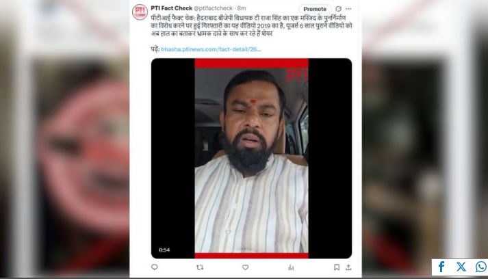 Fact Check: मस्जिद के पुनर्निर्माण का विरोध करने पर राजा सिंह की गिरफ्तारी का वीडियो पुराना है, हाल का बताकर किया जा रहा...